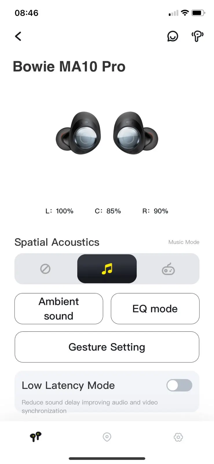 Select Bass mode for sports,Music mode for daily immersive listening,and Game mode for audio and video in full sync