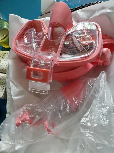 Compared with the full face type, the snorkel gear won't make you feel stuffy in summer, and the weight is only a quarter of the old full face snorkel mask. The snorkel set comes with adjustable straps that allow you to adjust to the most comfortable fit.Breather tube is detachable and foldable. which is light and small, easy to store and carry.