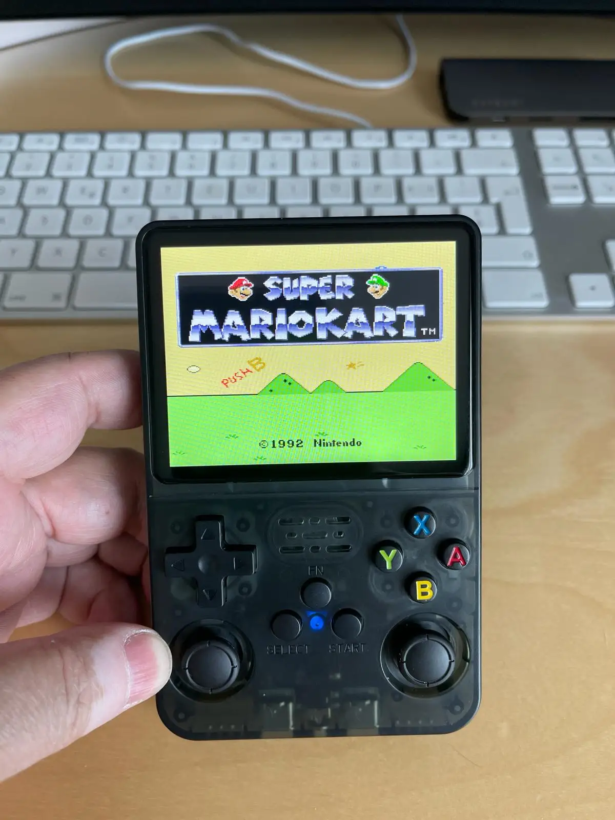 Open Source Linux system, 3.5-inch IPS OCA Full Lamination HD MIPI Screen, Resolution: 640*480, Professional Gaming CPU: RK3326, 1.5HZ, 64-bit Gaming System, Run large 2D and some 3D games Easily!